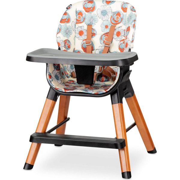 Krzesełko wyposażone zostało w dwie tacki. Podstawowa - regulowana w 3 stopniach, jest obszerna, a zaokrąglone krawędzie zapobiega gromadzeniu się w nich resztek jedzenia. Silikonowa, którą można zdjąć i umyć w zlewie lub zmywarce. Krzesełko posiada 5 punktowe pasy, które dbają o bezpieczeństwo i zapobiegną wypadnięciu maluszka. Cztery szeroko rozstawione nóżki z antypoślizgami zapewnią odpowiednią stabilność.