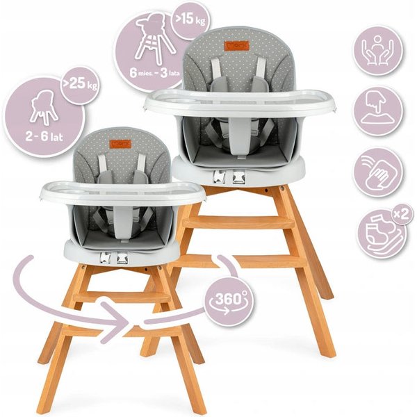 - Wysokie krzesełko dla dzieci od 6 miesiąca do 3 lat,
