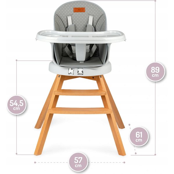 Krzesełko do karmienia 3w1 siedzisko obrotowe Woodi MoMi