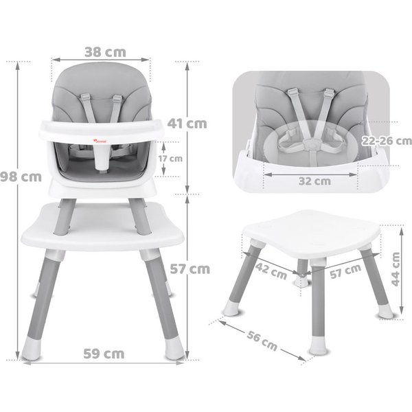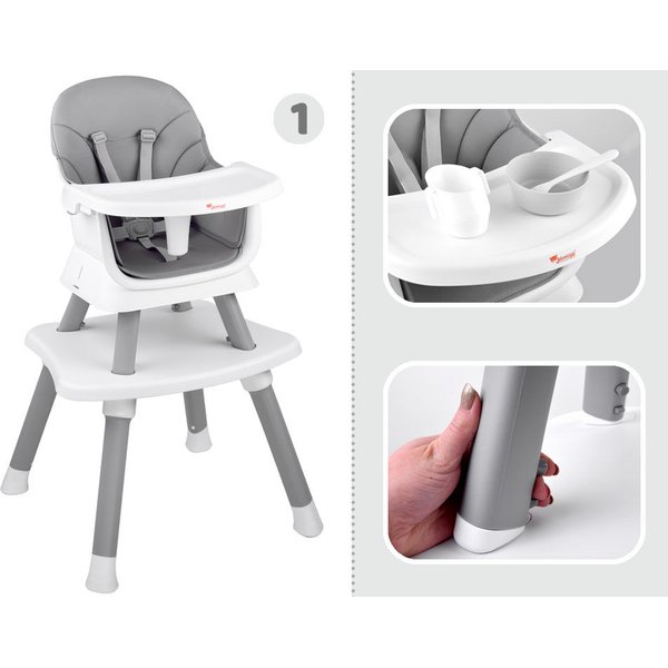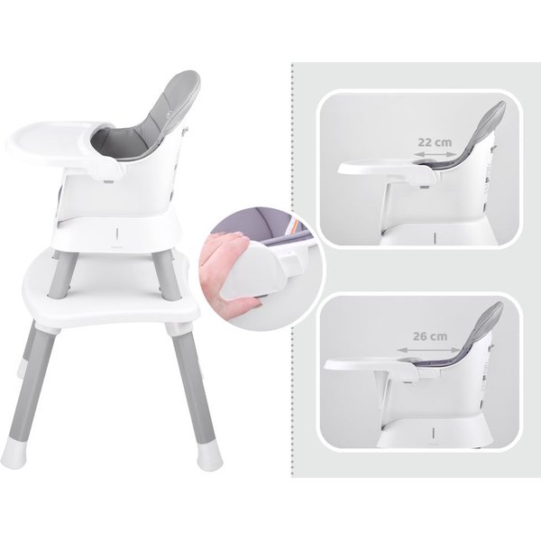 - 2 warianty wysokości: wysokie lub niskie krzesełko + stolik