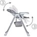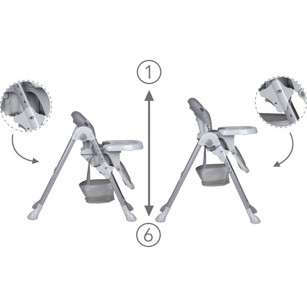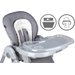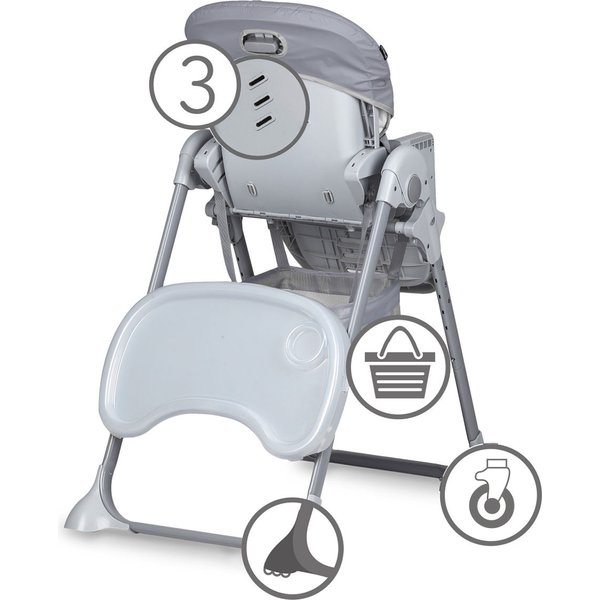 Krzesełko wyposażone jest w pasy zabezpieczające, co zapewnia komfort rodziców oraz bezpieczeństwo maluchowi. Wszechstronna regulacja pozwala na dopasowanie krzesełka do aktualnych potrzeb dziecka. Gdy maluch podrośnie tackę można całkowicie zdemontować, zawiesić z tyłu krzesełka na specjalnych zaczepach oraz przysunąć do stołu tak aby maluch jadł z rodziną.