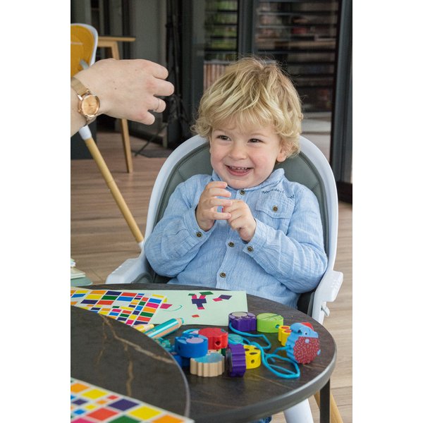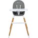 Model ten to produkt 2 w 1, który będzie służył Twojemu dziecku do spożywania posiłków od 6. miesiąca życia aż do ukończenia 6 lat lub osiągnięcia wagi 30 kg. Prosty, minimalistyczny design z łatwością dopasuje się do każdej kuchni lub pokoiku dziecięcego. Drewniane nóżki i bardzo stabilna konstrukcja gwarantują bezpieczeństwo, podobnie jak 5-punktowe, regulowane pasy bezpieczeństwa. Siedzisko krzesełka jest miękko wyściełane dla większego komfortu, a jego tapicerkę łatwo wyczyścić. Wysokie krzesło możesz z łatwością rozmontować, aby powstała jego niska wersja, na której może samodzielnie siedzieć starszak.