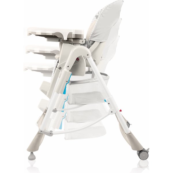 Gdy maluch podrośnie tackę można całkowicie zdemontować, zawiesić z tyłu krzesełka na specjalnych zaczepach oraz przysunąć do stołu tak aby maluch jadł z rodziną. Wysokość siedzenia można regulować, tak aby dopasować do wysokości stołu.