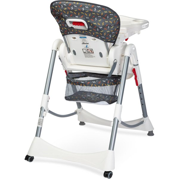 Krzesełko z łatwością przesuwa się z miejsca w sposób bezpieczny dla podłogi, wyposażone w kauczukowe kółka. Dodatkowym atutem krzesełka Bistro jest wkładka redukcyjna dla mniejszych dzieci. Intuicyjny system składania pozwala na schowanie krzesełka, gdy dziecko z niego nie korzysta - po złożeniu zajmuje niewiele miejsca.