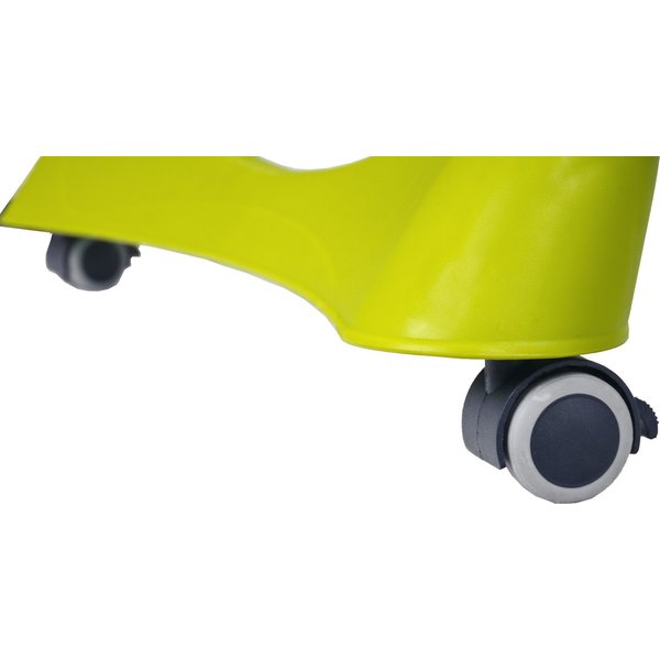 - krzesełko z łatwością przesuwa się z miejsca w sposób bezpieczny dla podłogi, wyposażone w kauczukowe kółka (z możliwością blokady)