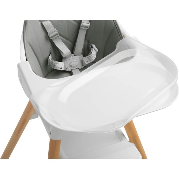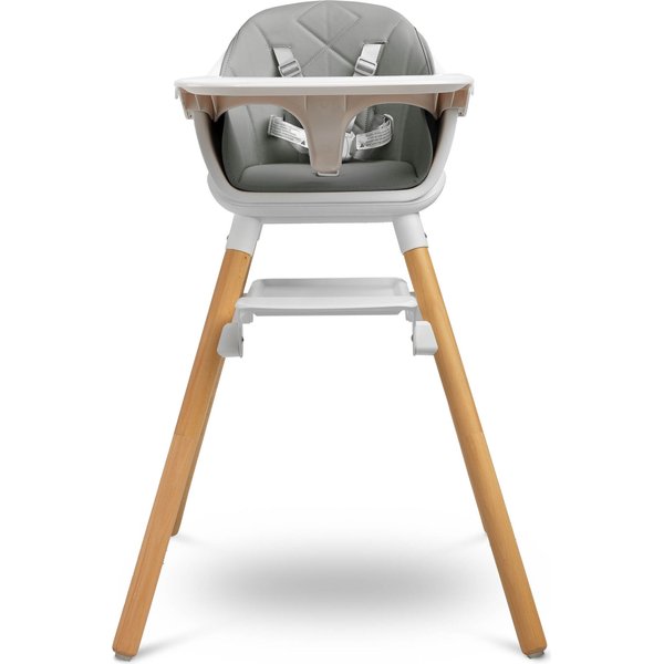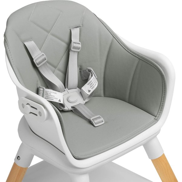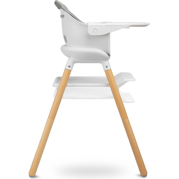 Podnóżek jest regulowany dwustopniowo, aby także starsze dzieci mogły siedzieć wygodnie. Wytrzymała i odporna na zabrudzenia tapicerka ze skóry ekologicznej jest bardzo łatwa w utrzymaniu czystości. Tackę możesz zdjąć, a dzięki profilowaniu nic nie wyleje się na podłogę. Krzesełko posiada stabilną konstrukcję. Jego nóżki wykonano z litego drewna. O bezpieczeństwo Twojej pociechy zadbają 5 - punktowe pasy bezpieczeństwa i antypoślizgowe stopki.