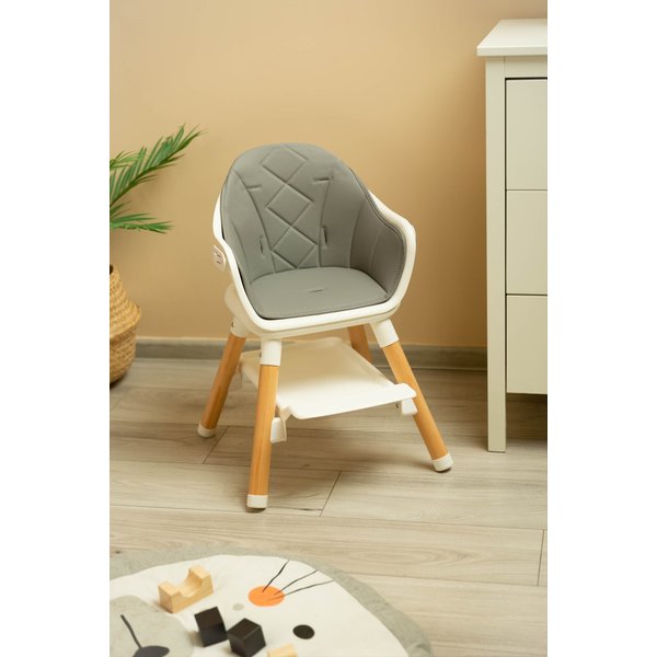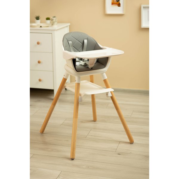 Produkt ten może być wykorzystywany do karmienia dziecka od 6. miesiąca aż do ok. 3. roku życia. W zależności od potrzeb możesz go użytkować jako typowe, wysokie krzesełko, niski fotel lub taboret. Jego elegancki, minimalistyczny wygląd pozwala na łatwe dopasowanie do każdego rodzaju wnętrza. Lekkie krzesełko spotka się z uznaniem fanów skandynawskiego stylu.