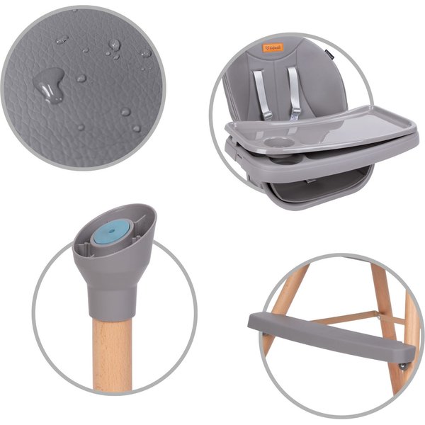 Nowoczesny, minimalistyczny design podkreślony przez drewniane nóżki, wysoki poziom bezpieczeństwa oraz duży komfort użytkowania na co dzień to wyróżniki tego krzesełka. Eatan posiada 5 - punktowe pasy bezpieczeństwa z możliwością ich demontażu, zabezpieczenie przed wysunięciem się maluszka, blat z tacką z możliwością ich całkowitego usunięcia, zdejmowane miękkie siedzisko ze skóry ekologicznej oraz regulację wysokości i oparcia. Wszystko to sprawia, że łatwo i bezpiecznie dopasujesz ten model do zmieniających się potrzeb Twojej pociechy.