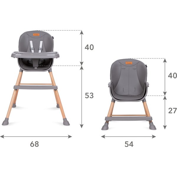 Wysoka wersja krzesełka z blatem i pasami będzie odpowiednia dla najmłodszych dzieci, już od 6. miesiąca aż do osiągnięcia przez nie wagi około 15 kg. Potem możesz przekształcić mebel w wysoki hoker, niskie krzesełko lub taboret. Eastan sprawdzi się zarówno podczas karmienia, jak i w czasie kreatywnej zabawy w rysowania lub układanie puzzli.