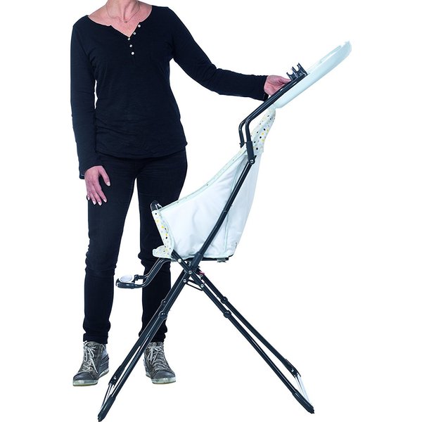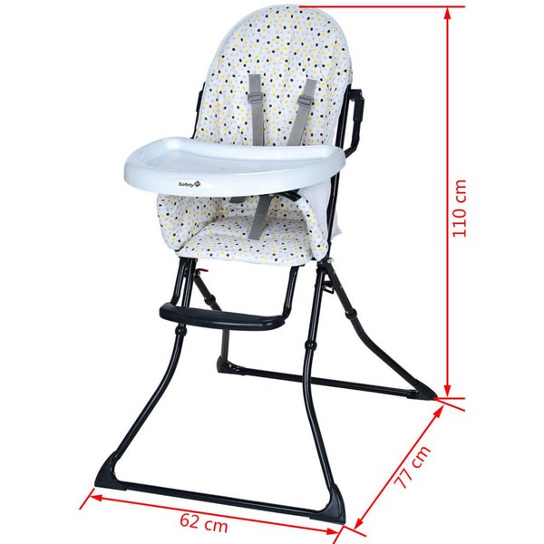 Produkt składa się na płasko i stoi pionowo co ułatwia przechowywanie nawet w małych pomieszczeniach.. Krzesełko będzie idealnym miejscem do pierwszych stałych posiłków dziecka. Na krzesełku jest demontowana tacka z dodatkową nakładką, która ułatwi podawanie posiłków oraz utrzymanie czystości.