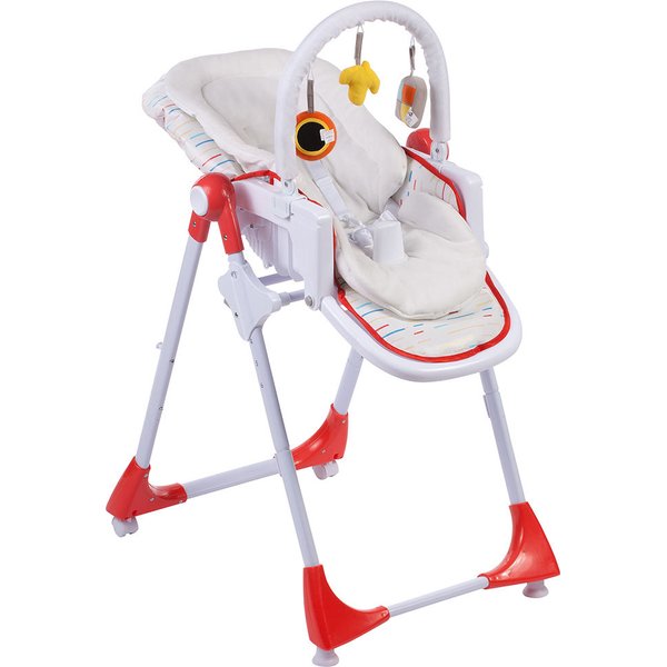 Krzesełko można stosować od 6 miesiąca życia dziecka. Posiada regulację wysokości siedziska, a oparcie rozkłada się do pozycji leżącej, dzięki czemu maluszek będzie mógł odpocząć po posiłku. Miękka i delikatna wkładka dla niemowlaczków w pełni zagwarantuje komfort i wygodę, a możliwość prania w pralce, zachowania w czystości. Krzesełko będzie idealnym miejscem do pierwszych stałych posiłków dziecka. Na krzesełku jest demontowana tacka z dodatkową nakładką, która ułatwi podawanie posiłków oraz utrzymanie czystości. Tapicerka krzesełka wykonana z wyjątkowo miękkiej i zmywalnej ceratki zapobiegnie powstawaniu trudno zmywalnych plam po jedzeniu. Dzięki pałąkowi, na którym zawieszone zostały 3 zabaweczki, maluszek z pełną radością i zainteresowaniem spędzi chwile w krzesełku.