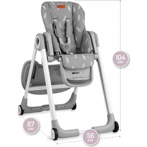 Krzesełko do karmienia Luxuria od Momi to gwarancja zarówno wygody jak i bezpieczeństwa. Zapewnia maluszkowi doskonałe miejsce do spożywania posiłków, który będzie mógł zjeść razem z najbliższymi, przy stole. Wszystko dzięki 7 stopniowej regulacji wysokości, która pozwoli dostosować ją do naszych wymagań. Szeroko rozstawione kółka oraz stopki z antypoślizgiem, zapewniają odpowiednią stabilność. Nie ma, więc obaw, że krzesełko będzie się samoczynnie przemieszczać. Dodatkowo o bezpieczeństwo zadbają 5 punktowe pasy z możliwością regulacji. To pozwoli na idealne dopasowanie ich do wzrostu maluszka.