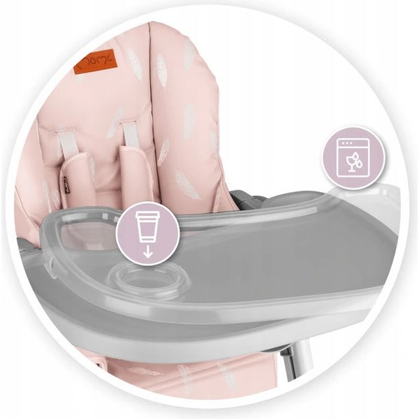 pozwolą przybrać wygodną, półleżącą pozycję. W chwilach gdy nie używamy tacki możemy ją bez problemu umieścić z tyłu krzesełka na specjalnym uchwycie. Prosty system rozkładania oraz możliwość złożenia go do kompaktowych wymiarów pozwala na jego przechowywanie lub transport.