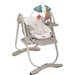 Krzesełko można stosować już od pierwszych chwil życia malucha, jako leżaczek do zabaw lub relaksu. Oparcie rozkłada się do płaskiej pozycji, a w wyposażeniu jest specjalna wkładka redukcyjna dla niemowląt, która zapewni bezpieczną pozycję najmłodszym dzieciom. Czas spędzany w krzesełku umili pałąk z zabawkami montowany nad główką dziecka. Maluszek z chęcią będzie sięgał i trącał zawieszone elementy.