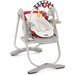 Krzesełko można stosować już od pierwszych chwil życia malucha, jako leżaczek do zabaw lub relaksu. Oparcie rozkłada się do płaskiej pozycji, a w wyposażeniu jest specjalna wkładka redukcyjna dla niemowląt, która zapewni bezpieczną pozycję najmłodszym dzieciom. Czas spędzany w krzesełku umili pałąk z zabawkami montowany nad główką dziecka. Maluszek z chęcią będzie sięgał i trącał zawieszone elementy.