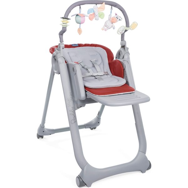 Niezwykle praktyczne, wielofunkcyjne i komfortowe krzesełko do karmienia marki Chicco. Odświeżona wersja krzesełka Polly Magic teraz w zestawie z pałąkiem pełnym zabawek, wkładką redukcyjną oraz 4 kółkami, które ułatwią przemieszczanie krzesełka! Charakteryzuje się ono przede wszystkim solidnym wykonaniem, nowoczesnym designem, bogatym wyposażeniem oraz wielofunkcyjnym zastosowaniem. Krzesełko można stosować już od pierwszych chwil życia malucha, jako leżaczek do zabaw lub relaksu. Oparcie rozkłada się do płaskiej pozycji, a w wyposażeniu jest specjalna wkładka redukcyjna dla niemowląt, która zapewni bezpieczną pozycję najmłodszym dzieciom. Czas spędzany w krzesełku umili pałąk z zabawkami montowany nad główką dziecka. Maluszek z chęcią będzie sięgał i trącał zawieszone elementy.