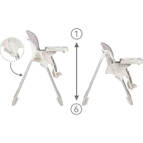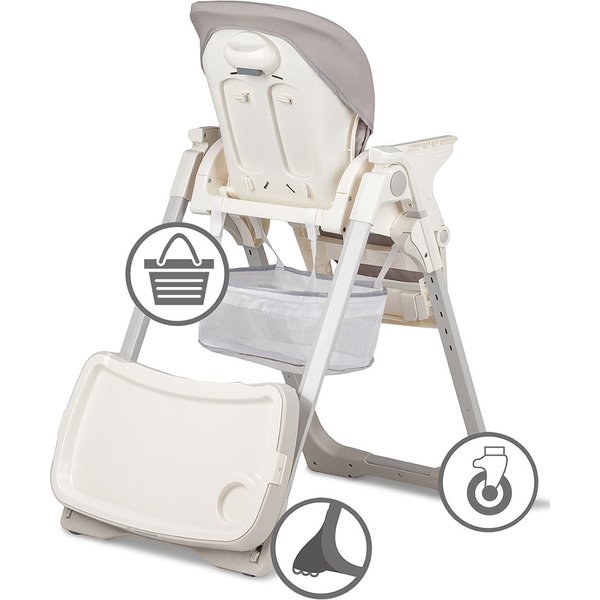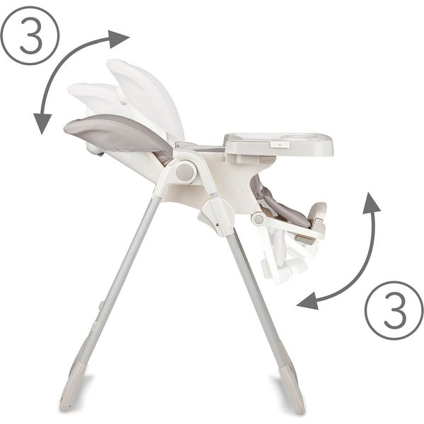 Krzesełko wyposażone jest w pasy zabezpieczające, co zapewnia komfort rodziców oraz bezpieczeństwo maluchowi. Wszechstronna regulacja pozwala na dopasowanie krzesełka do aktualnych potrzeb dziecka. Gdy maluch podrośnie tackę można całkowicie zdemontować, zawiesić z tyłu krzesełka na specjalnych zaczepach oraz przysunąć do stołu tak aby maluch jadł z rodziną.