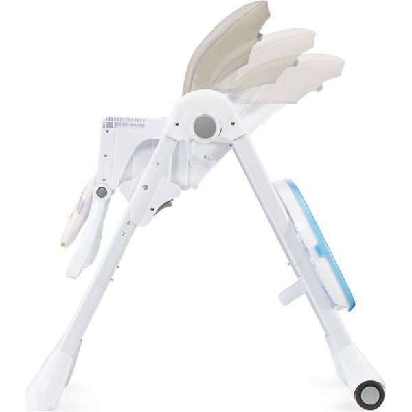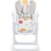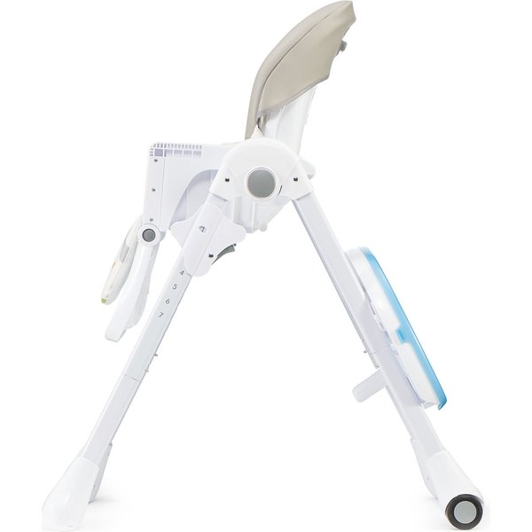 - Regulowany kąt oparcia i podnóżka. Jeżeli więc zdarzy się, że maluch zmęczy się podczas posiłku i zaśnie, można zmienić położenie oparcia i podnóżka, żeby było mu wygodnie,