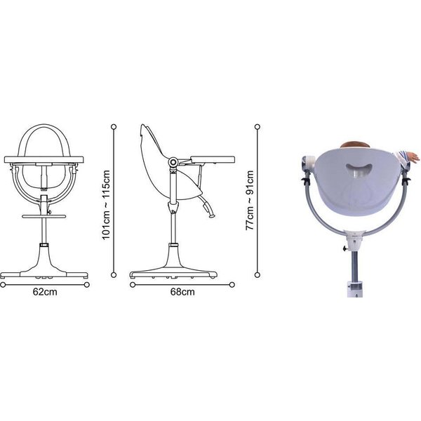 Stelaż krzesełka Fresco Chrome marki Bloom to połączenie stabilizacji z wygodą oraz wysokiej funkcjonalności. Zamontowana tacka na posiłek posiada również łatwą możliwość demontażu, dlatego wszystko jest bardzo proste w utrzymaniu czystości. Do tego stelaż jest regulowany zarówno pod kątem pozycji w jakiej znajduje się dziecko jak i pod kątem wysokości siedziska oraz podpórki na stopy.