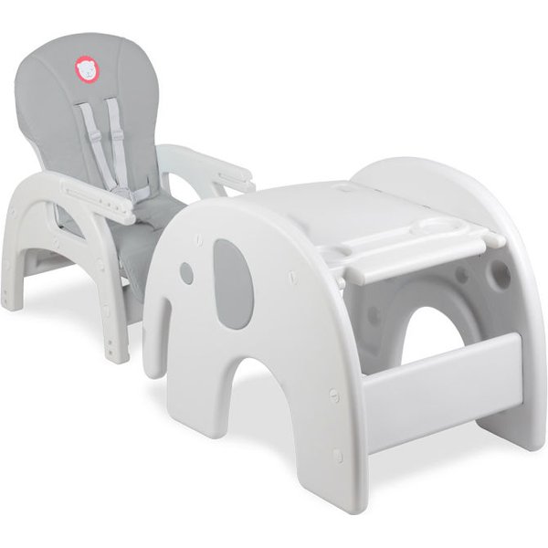 Krzesełko 5 w 1 to produkt, który posłuży jako krzesełko do karmienia, krzesło oraz stolik w jednym. Dzięki wszechstronnym zastosowaniom produkt posłuży długi okres czasu. Posiada wszystkie potrzebne regulacje, aby zapewnić maluchowi komfort i ergonomię. Wyprodukowany jest z bezpiecznych materiałów dla dziecka.