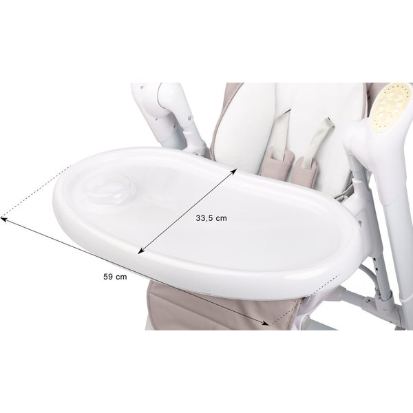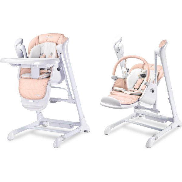Model ten spełnia 2 przydatne funkcje. Oprócz miejsca do karmienia możemy zrobić z niego huśtawkę, która jest przeznaczona dla dzieci już od pierwszych dni życia do osiągnięcia wagi 9 kg. Natomiast krzesełko użytkowane może być od 6 miesiąca do około 3-4 lat (max 15 kg). Dzięki temu zaoszczędzimy miejsce, które przy małych dzieciach jest potrzebne. Oparcie można rozłożyć do pozycji leżącej (4 stopnie regulacji). Regulować możemy również wysokość krzesełka (6stopni) oraz podnóżka (5 stopni). Prędkość huśtania jest możliwa do ustawienia pod wymagania maluszka, a czasomierz pozwoli wyłączyć bujanie po 8, 15 lub 30 minutach. Wyposażone jest również w zdejmowany pałąk z zabawkami, które z pewnością zachwycą dziecko. Bezpieczeństwo zapewni solidna konstrukcja i antypoślizgowe stopki. Krzesełko jest również bardzo łatwe do utrzymania w czystości dzięki tapicerce odpornej na zabrudzenia i podwójnej tacce, którą łatwo zdjąć i umyć.