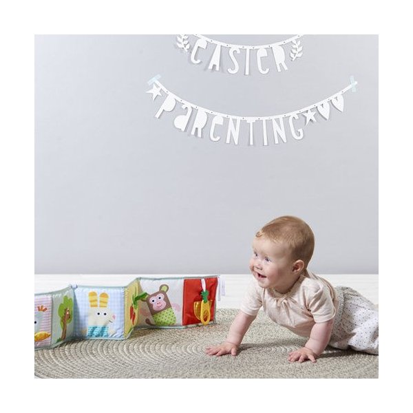 Książeczka będzie idealna do zabawy na podłodze, w wózku, foteliku, a nawet łóżeczku!