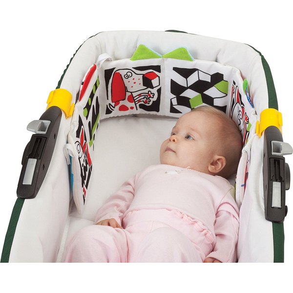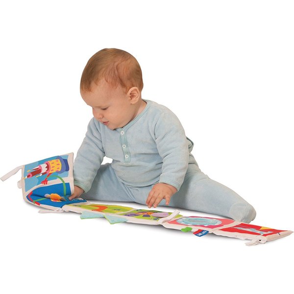 Książeczka będzie idealna do zabawy na podłodze, w wózku, foteliku, a nawet łóżeczku! Dzięki specjalnym klipsom można ją łatwo przyczepić np. do ścian gondolki.