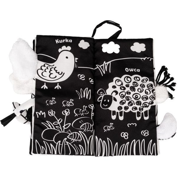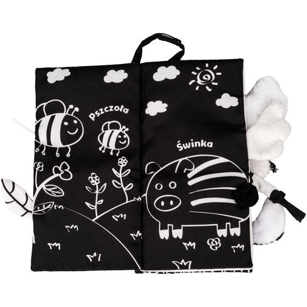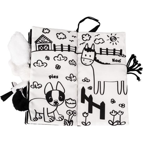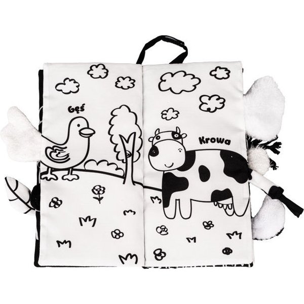 Kontrastowa książeczka z przecudowymi bohaterami! Tylko czekają, aby rozbawić maluszka. Jej barwy z pewnością przyciągną wzrok maluszka i zachęcą do zabawy. Wystające ogonki z różnych faktur pozwolą stymulować zmysł dotyku. To pozwoli dziecku zapoznać się ze zwierzątkami i ich nazwami. Dodatkowa szeleszcząca okładka z pewnością zaciekawi niemowlaka. Książeczka wyposażona została w uchwyt na rzep, który umożliwi zamocowanie jej w dowolnym miejscu.