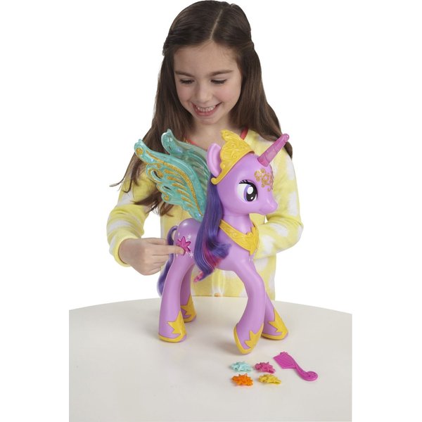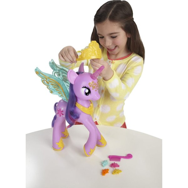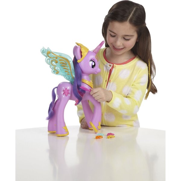 Czarująca, Księżniczka Twilight Sparkle przeniesie każdą dziewczynkę w niezwykły świat królewskiej magii. Ma czujniki dotyku, jej przepiękne skrzydła i róg świecą, porusza głową, mruga oczami i mówi po polsku!