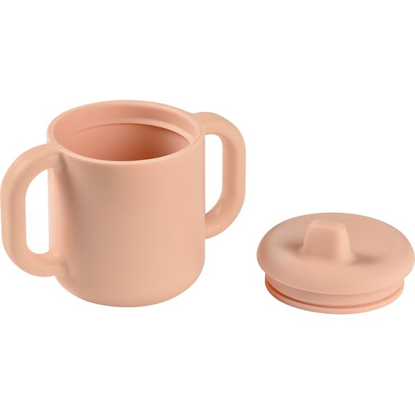 Kubek posiada antypoślizgową powierzchnię, zdejmowane wieczko i dwa uchwyty wygodne do trzymania dla maluszka, który dopiero uczy się trudnej sztuki samodzielnego picia. Ustnik pomoże pić bez rozlewania, a w przypadku starszych maluszków można zdjąć wieczko, aby mogły naśladować sposób picia dorosłych. Kubeczek został wyprodukowany z bezpiecznego dla dzieci silikonu, wolnego od BPA i innych szkodliwych substancji.