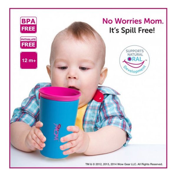 WOW Cup Kubek niekapek typu 360o pozwala na komfortowe picie jak ze szklanki bez obawy rozlania napoju. Kubek posiada uszczelkę dookoła krawędzi przez co możemy pić z każdej strony. Gdy dziecko się napije, kubek ponownie się uszczelnia i napój nie wyleje się z niego do momentu kiedy kolejny raz dziecko będzie chciało się napić.