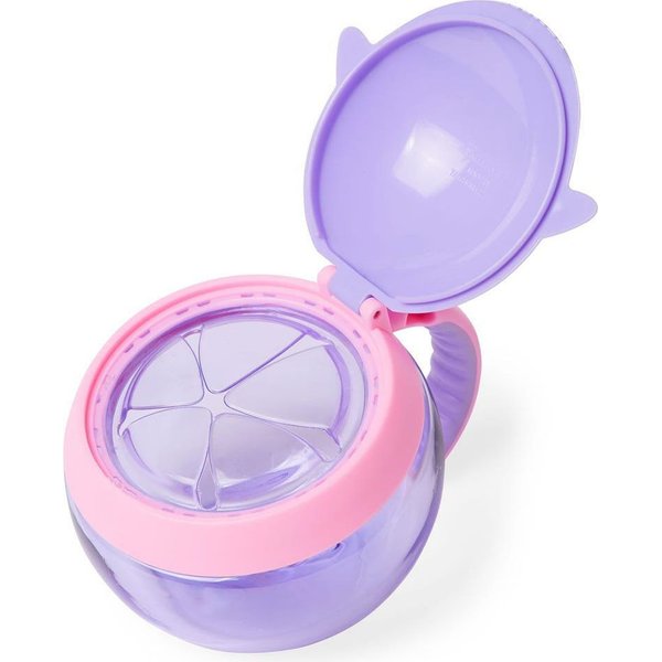 Przydatny pojemnik na przekąski, doskonały do wykorzystania zarówno w domku, ja i na spacerze, czy podczas podróży samochodem. Pojemniczek ma miękką przykrywkę umożliwiającą małym rączkom dostęp do środka oraz łatwy do trzymania uchwyt. Gdy pojemniczek przewrócimy do góry nogami, przekąski pozostają w środku. Antypoślizgowe uchwyty ułatwiają trzymanie i przenoszenie przez dziecko. Sprawdzi się przy podawaniu różnych przekąsek, chrupek, owoców i warzyw.