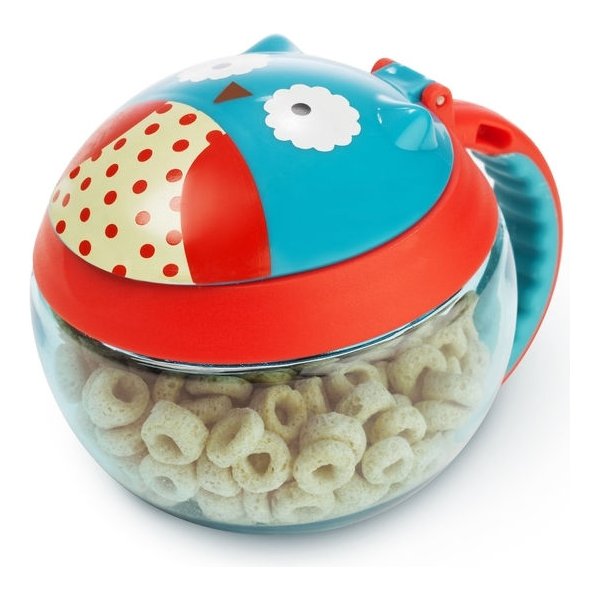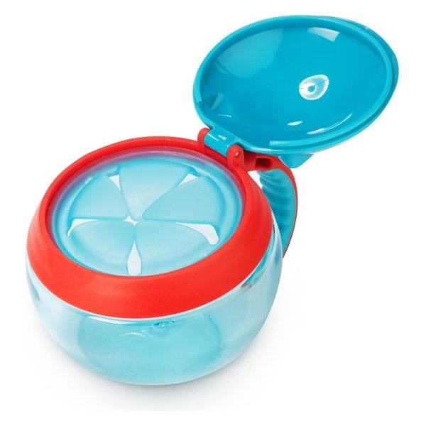 Przydatny pojemnik na przekąski, doskonały do wykorzystania zarówno w domku, ja i na spacerze, czy podczas podróży samochodem. Pojemniczek ma miękką przykrywkę umożliwiającą małym rączkom dostęp do środka oraz łatwy do trzymania uchwyt. Gdy pojemniczek przewrócimy do góry nogami, przekąski pozostają w środku. Antypoślizgowe uchwyty ułatwiają trzymanie i przenoszenie przez dziecko. Sprawdzi się przy podawaniu różnych przekąsek, chrupek, owoców i warzyw.
