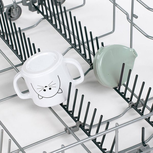 Designerski i lekki kubeczek z dwoma uchwytami, gwarantujący że mały szkrab w łatwy i prosty sposób go pochwyci i pewnie będzie leżał w rączkach, a ustnik wykonany z silikonu będzie idealny do nauki picia przez maluszka.