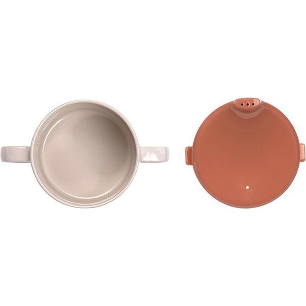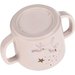 Designerski i lekki kubeczek z dwoma uchwytami, gwarantujący że mały szkrab w łatwy i prosty sposób go pochwyci i pewnie będzie leżał w rączkach, a ustnik wykonany z silikonu będzie idealny do nauki picia przez maluszka. Kubek posiada silikonowe wykończenie, zapobiegnie to przesuwaniu się naczynia po powierzchni. Produkt wykonany został z bardzo dobrej jakości melaminy, która jest w 100% bezpieczna dla dziecka.