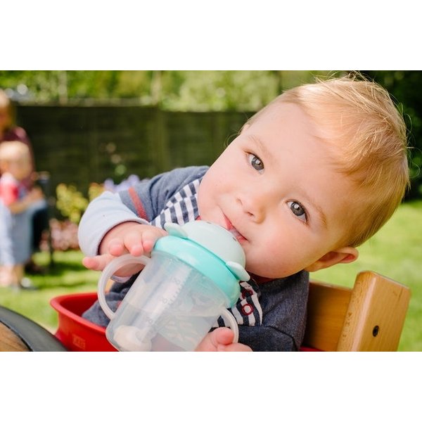 Pierwszy kubek z rurką ułatwi dziecku przejście z picia z butelki do kubeczka. Korzystanie z kubeczka będzie kolejnym etapem na drodze do samodzielności. Specjalnie wyprofilowane uchwyty pozwolą małym rączką z łatwością utrzymać kubek. Umieszczona wewnątrz rureczka układa się dokładnie tam gdzie picie dla naszego maluszka, pozwala tym samym na wypicie całego kubeczka bez pozostawiania ani jednej kropli.