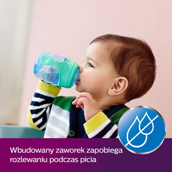 Lekki i poręczny kubeczek od Philips Avent zapewnia komfortowe i łatwe picie od pierwszych miesięcy życia.
