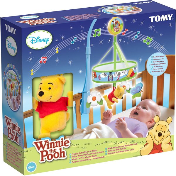 Bajecznie kolorowa karuzelka z pluszową postacią Kubusia Puchatka oraz nakręcaną pozytywką.