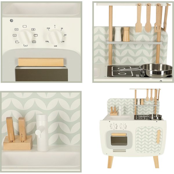 Kuchnia drewniana MDF Lulilo Retro KIK to idealna zabawka dla małych kucharzy. Wykonana z wysokiej jakości drewna, zapewnia długotrwałą i bezpieczną zabawę. Kuchnia ma kompaktowe wymiary, dzięki czemu łatwo zmieści się w pokoju dziecka. W zestawie znajdują się akcesoria kuchenne, takie jak noże, patelnia, solniczka i pieprzniczka. Dodatkowo, kuchnia wyposażona jest w zlew z kranem oraz półkę na przechowywanie akcesoriów. Dzięki temu, dziecko może odgrywać różne role i rozwijać swoje umiejętności kulinarnie. Kuchnia drewniana MDF Lulilo Retro KIK to doskonały wybór dla każdego małego kucharza!