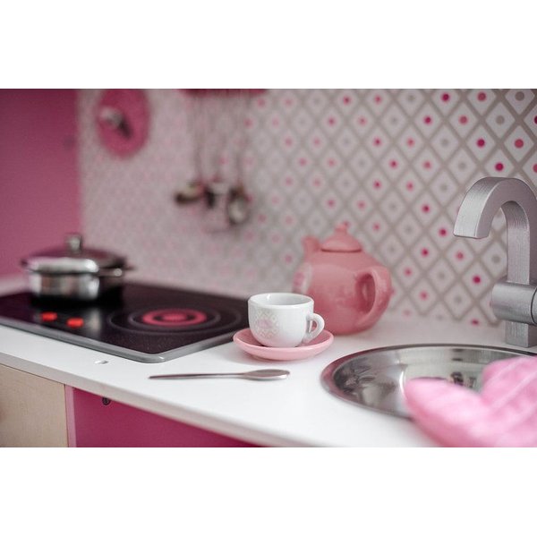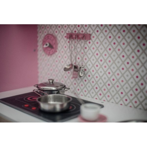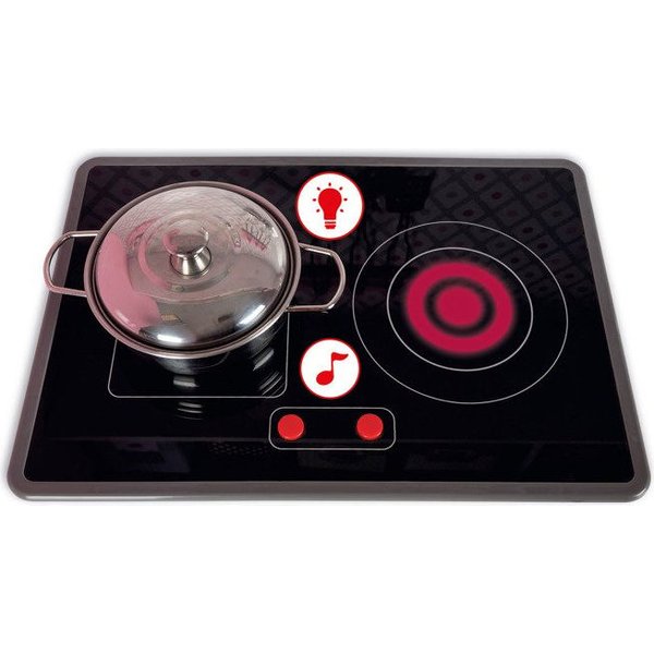 Dodatkowo dołączone do niej są: patelnia, garnek z pokrywką, chochla, łyżka do makaron, szpatułka, rękawica kuchenna, drewniane sadzone jajko i 7 produktów spożywczych. Dziecko będzie mogło bezpiecznie uczestniczyć w przygotowywaniu jedzenia, bez obaw o jego zdrowie. Kuchnia ma również sygnał dźwiękowy oraz podświetlenie palników.