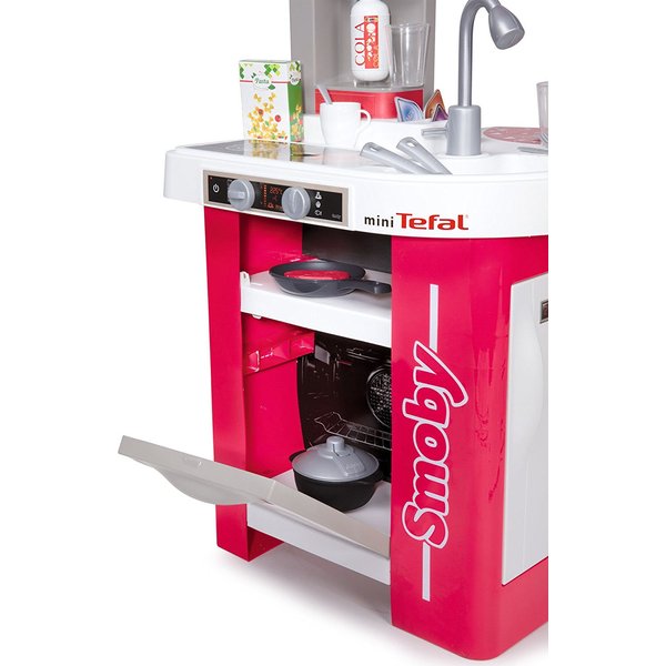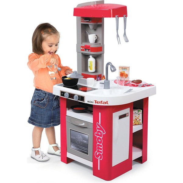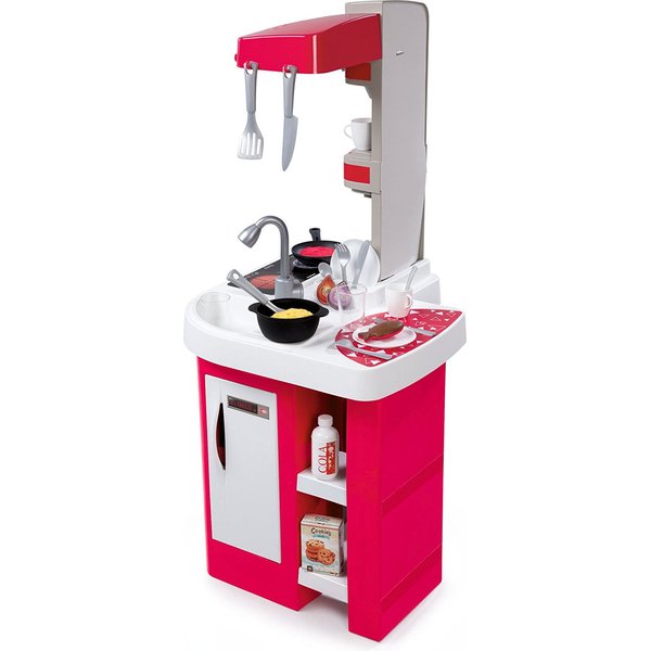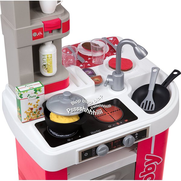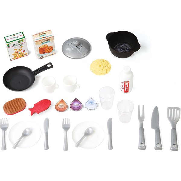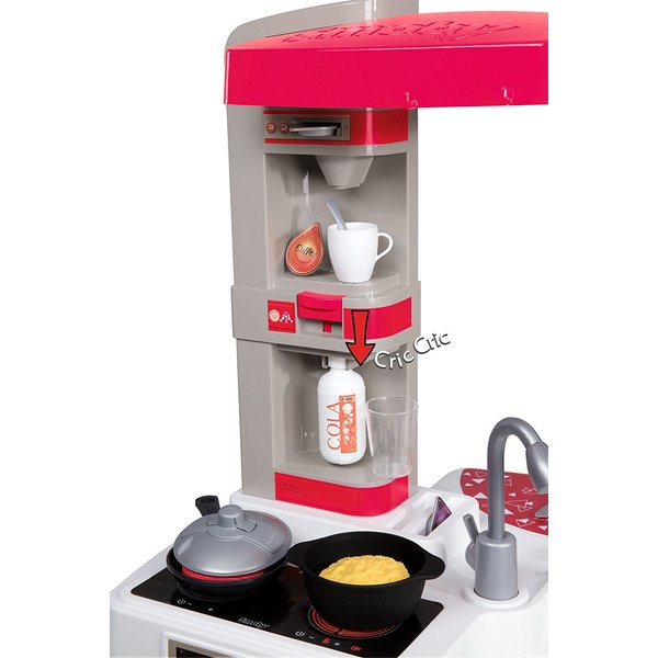 Każdy maluch uwielbia gotować i przyrządzać wymyślone dania dla swoich zabawek i przyjaciół. Ten ogromny zestaw dokładnie odzwierciedla prawdziwe urządzenia oraz naczynia, które można znaleźć w kuchni. Jest tu płyta kuchenna z przyciskami do przekręcania, zlew, lodówka, ekspres do kawy na kapsułki, automat do napojów gazowanych, patelnia z funkcją przewracania ryb i hamburgerów i wiele więcej!