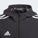 Kurtka kurtka wykonana została z tkaniny o splocie płóciennym i posiada dopasowany krój. Dzięki technologii AEROREADY oraz podszewce z siateczki gwarantuje skuteczne pochłanianie wilgoci oraz suchość, a także wysoki komfort noszenia. Suwak na całej długości pozwoli na dostosowanie w zależności od warunków pogodowych, a kaptur zwiększy ochronę przed wiatrem i deszczem. Model ten posiada elastyczne mankiety, dzięki czemu kurtka jest lepiej dopasowana. Przednie kieszenie zamykane na suwak pozwolą na bezpieczne i wygodne przechowywanie drobiazgów. Kurtka doskonale sprawdzi się podczas przerw w trakcie treningu, ale również spełni swoje zadanie podczas wykonywania codziennych czynności. Skutecznie ochroni przed wiatrem i zapewni ciepło. Model wykonany został w 43% z materiału z recyklingu w ramach działań marki zmierzających do zmniejszenia odpadów plastikowych.