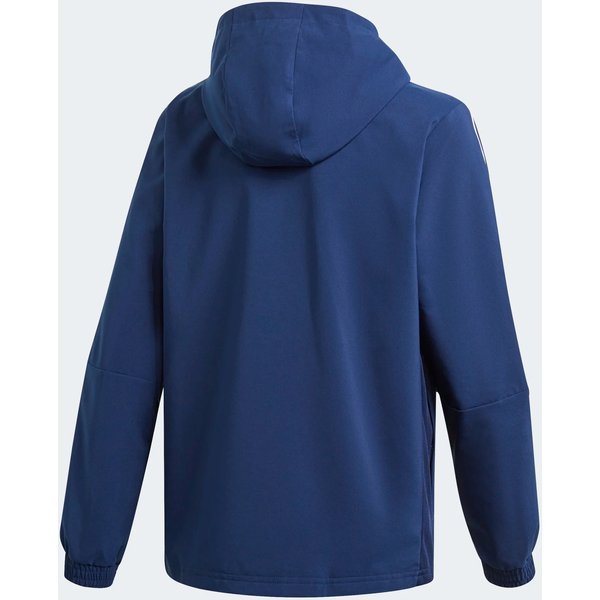 Kurtka kurtka wykonana została z tkaniny o splocie płóciennym i posiada dopasowany krój. Dzięki technologii AEROREADY oraz podszewce z siateczki gwarantuje skuteczne pochłanianie wilgoci oraz suchość, a także wysoki komfort noszenia. Suwak na całej długości pozwoli na dostosowanie w zależności od warunków pogodowych, a kaptur zwiększy ochronę przed wiatrem i deszczem. Model ten posiada elastyczne mankiety, dzięki czemu kurtka jest lepiej dopasowana. Przednie kieszenie zamykane na suwak pozwolą na bezpieczne i wygodne przechowywanie drobiazgów. Kurtka doskonale sprawdzi się podczas przerw w trakcie treningu, ale również spełni swoje zadanie podczas wykonywania codziennych czynności. Skutecznie ochroni przed wiatrem i zapewni ciepło. Model wykonany został w 43% z materiału z recyklingu w ramach działań marki zmierzających do zmniejszenia odpadów plastikowych.