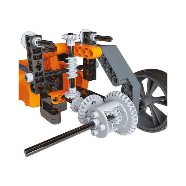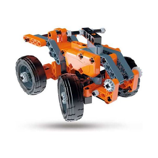 Zestaw zawiera wszystkie elementy niezbędny do zbudowania dwóch różnych modeli quadów. To znakomita okazja do odkrywania działania różnych mechanizmów, manipulowania wymiennymi komponentami takimi jak skrzynia biegów, przekładnie, bary, śmigła i piny. Maluch rozwija umiejętności manualne, ćwiczy kreatywność i rozwiązywanie problemów oraz uczy się postępowania według instrukcji.