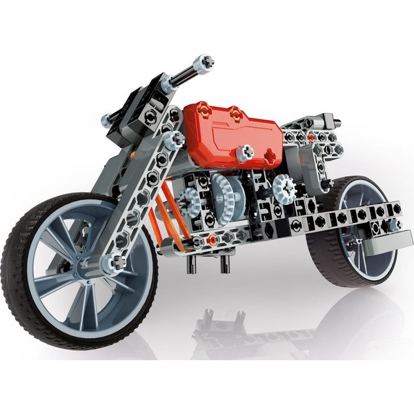 W zabawie mamy do dyspozycji ponad 130 wymiennych elementów, dzięki którym stworzymy 2 różne modele ścigaczy.