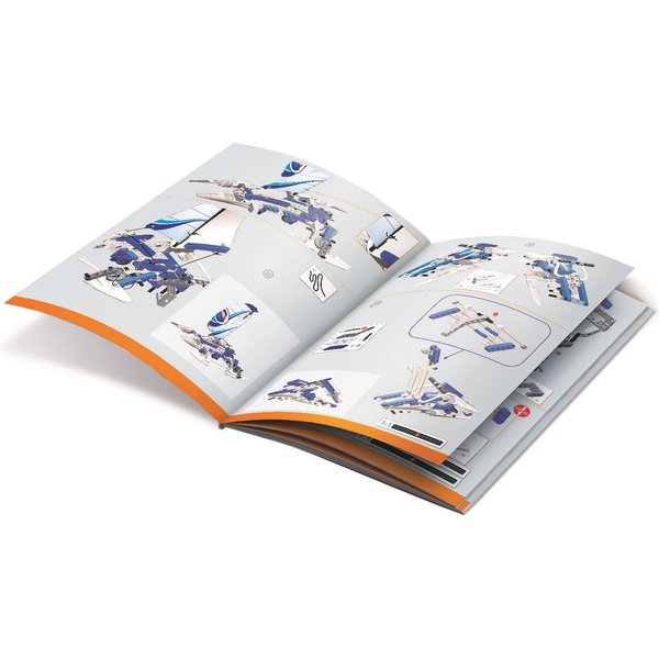 W zabawie mamy do dyspozycji ponad 130 wymiennych elementów, dzięki którym stworzymy 2 różne modele. Wykonywanie poszczególnych projektów rozwija u dziecka zdolności manualne, pomysłowość oraz kreatywne myślenie.