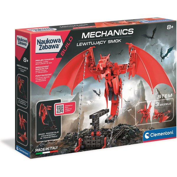 Niezwykły, latający model groźnego smoka z zestawu Laboratorium Mechaniki Smok włoskiej marki Clementoni zachwyci każde dziecko. Wysokiej jakości elementy konstrukcyjne pozwalają na samodzielne skonstruowanie potwora na łańcuchach, który wydaje się latać, choć w rzeczywistości wykorzystuje tylko w sprytny sposób zasadę TENSEGRITY: wzajemna stabilizacja elementów rozciąganych i ściskanych, czego efektem jest iluzja optyczna lewitacji.
