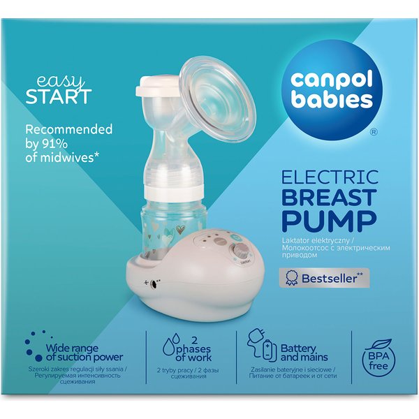 Laktator elektryczny EasyStart Light Canpol to idealne rozwiązanie dla mam, które chcą skutecznie regulować laktację i odciągać pokarm w sposób łatwy i wygodny. Dzięki trzem trybom pracy wzorowanym na naturalnym rytmie ssania dziecka, laktator stymuluje i pobudza, a następnie przechodzi w wolniejszy i głęboki tryb ssania mleka, co zapewnia szybszy wypływ pokarmu. Laktator jest bardzo cichy, można go używać bez obawy o budzenie dziecka nawet w nocy, a miękka nakładka z delikatnego silikonu zapewnia komfort i nie podrażnia wrażliwych brodawek. Laktator jest zasilany zarówno sieciowo, jak i bateryjnie, dzięki czemu można go zabrać ze sobą wszędzie. Jest w pełni bezpieczny dla zdrowia, a jego części są łatwe w czyszczeniu i montażu. Laktator EasyStart jest kompatybilny ze wszystkimi butelkami z oferty Canpol babies, a możliwość dokupienia lejka w rozmiarze 27 mm zapewni idealne dopasowanie dla każdej mamy.