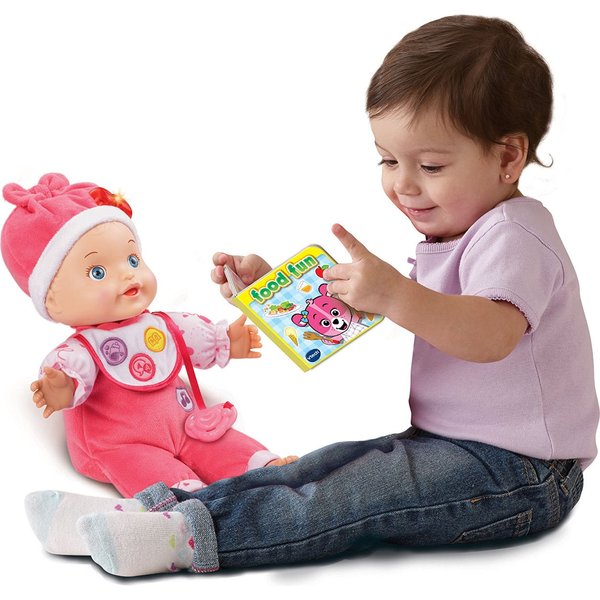 - Poczytaj mi - lalka chce, żeby poczytać jej książeczkę. Gdy ma rok uważnie słucha, w wieku 2 lat powtarza pojedyncze słowa, gdy osiągnie 3 lata umie już sama czytać książeczki