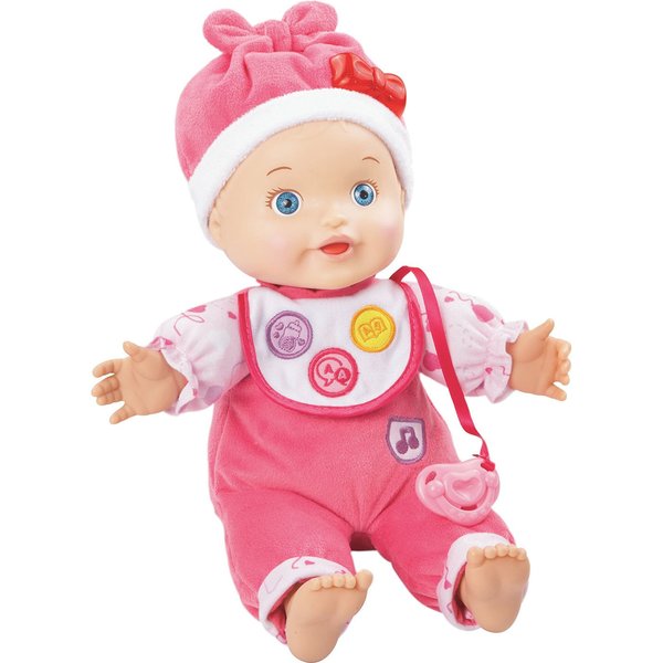 - Posłuchajmy muzyki - odtwarzane są delikatne kołysanki. Gdy lalka jest noworodkiem gaworzy, mając 2 latka cichutko nuci, gdy osiągnie 3 latka próbuje śpiewać